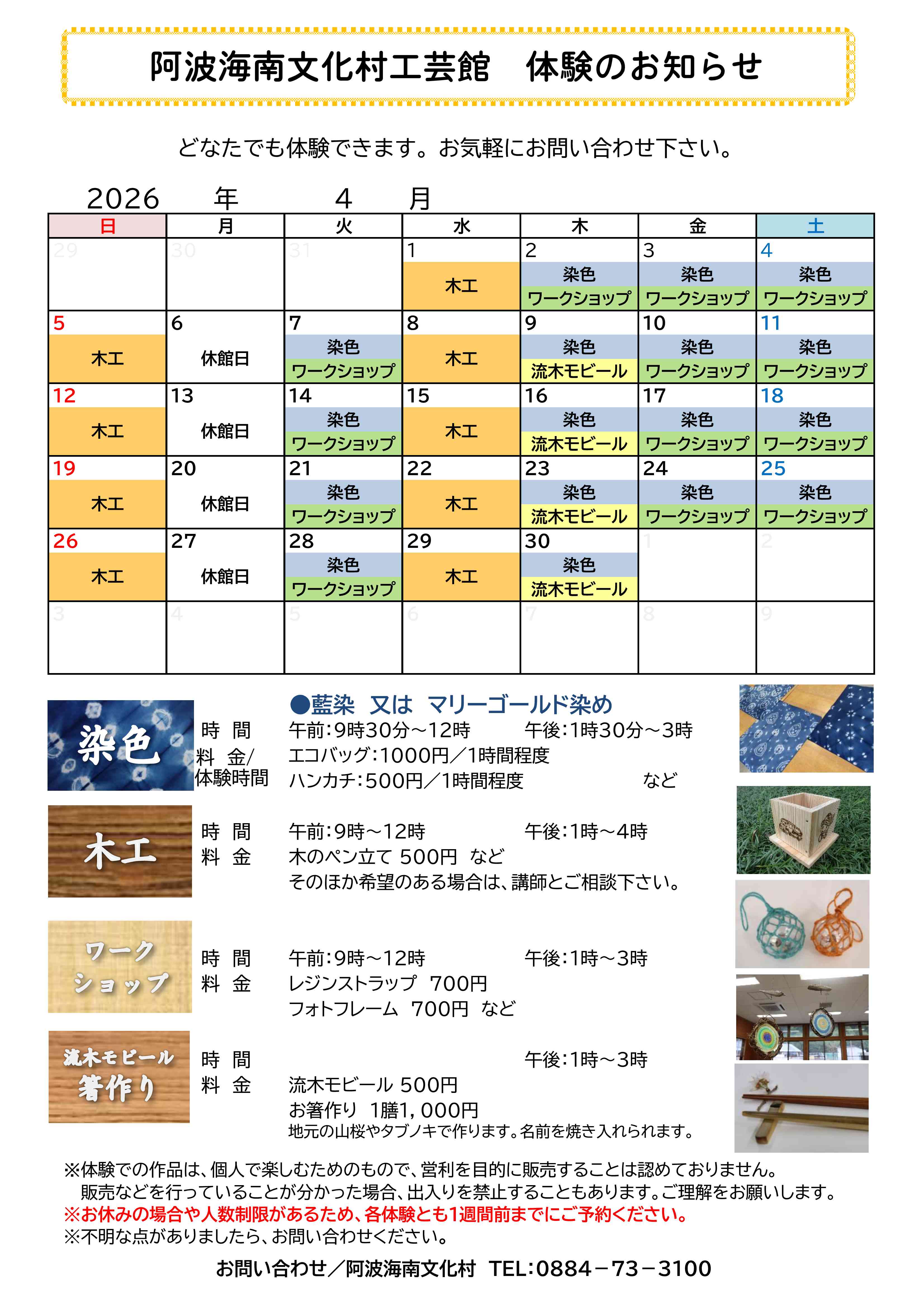 工芸館カレンダー(令和8年4月)についてお知らせいたします。