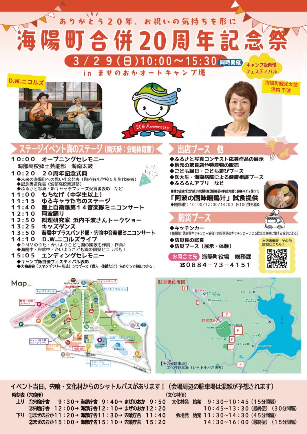 〇会場の関係上、周辺駐車場は混雑が予想されます。宍喰方面・阿波海南文化村よりシャトルバスを運行しますのでご利用下さい。